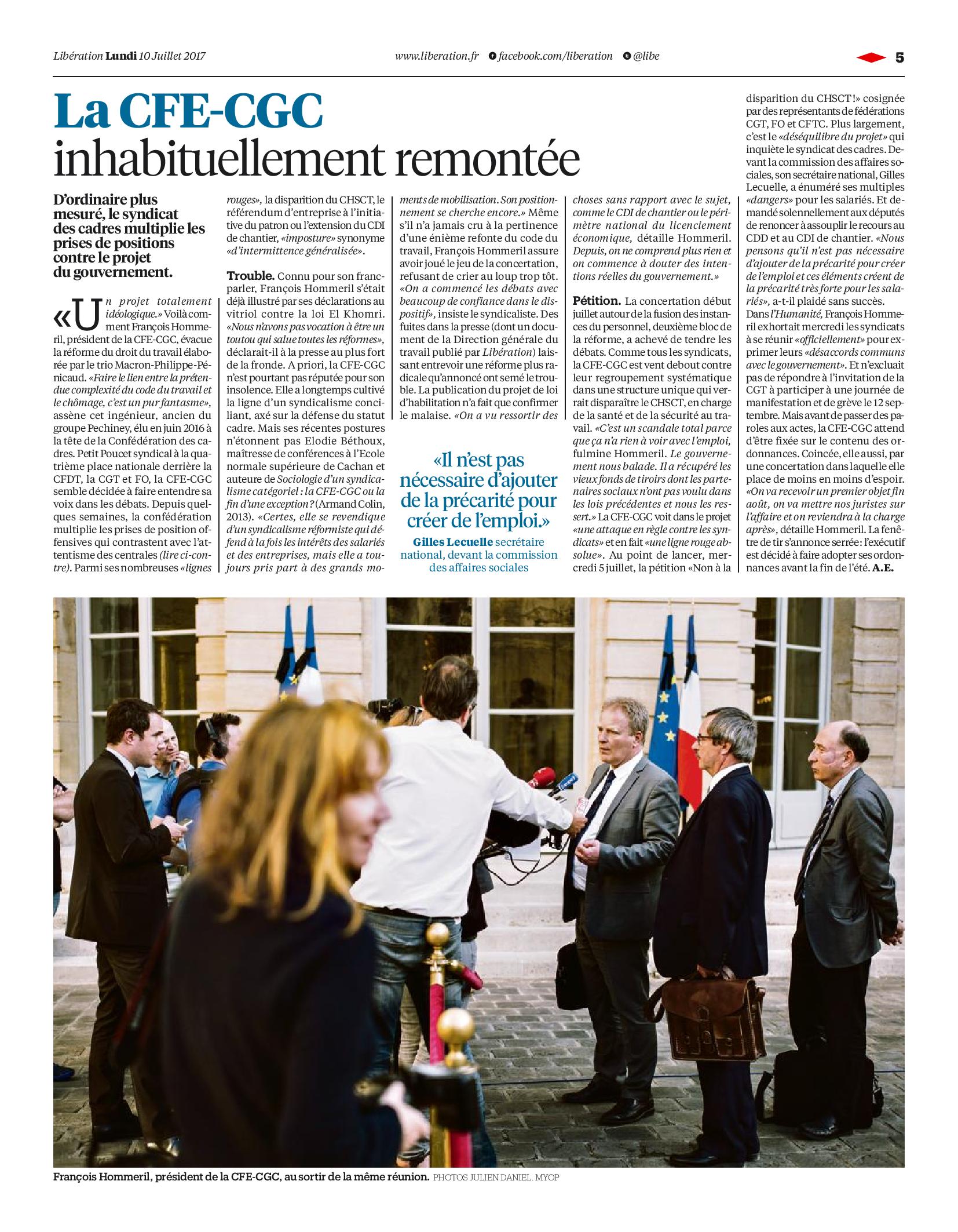 Libération – Code du travail, syndicats, présidentielle 2017…