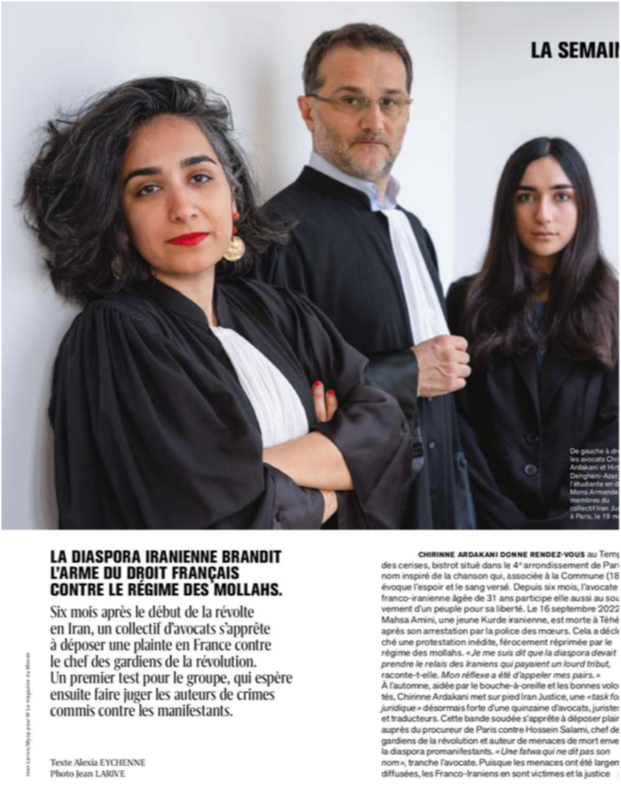 Six mois après le début de la révolte en Iran, un collectif d’avocats s’apprête à déposer une plainte en France contre le chef des gardiens de la révolution. Un premier test pour le groupe, qui espère ensuite faire juger les auteurs de crimes commis contre les manifestants.