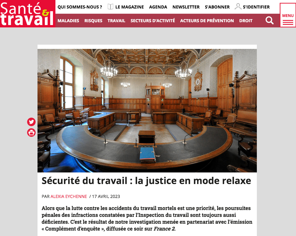 Une enquête parue en avril 2023 dans Santé & Travail.