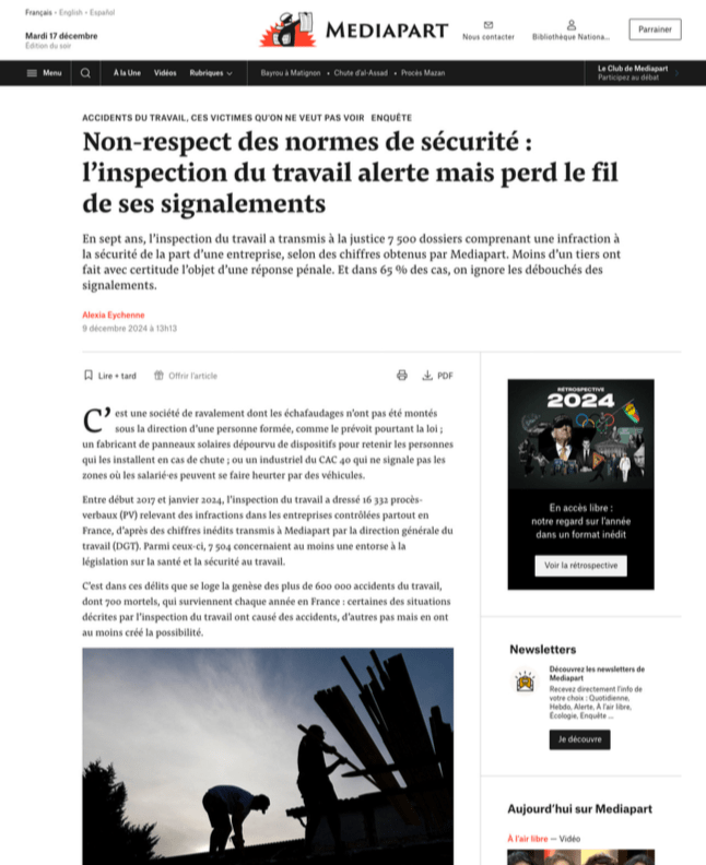 Une enquête parue dans Mediapart et Santé & Travail en décembre 2024.